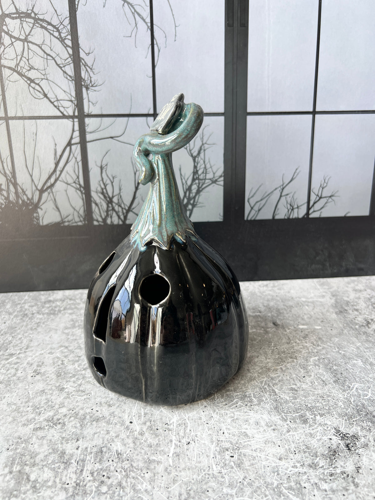 DO NOT use with an open flame/put a candle with open flame inside!!! Only use artificial lights such as LED lights. You can clean your jack o'lantern with soap and water like you would take care of any piece of kitchenware/pottery or dust it with a clean cloth.