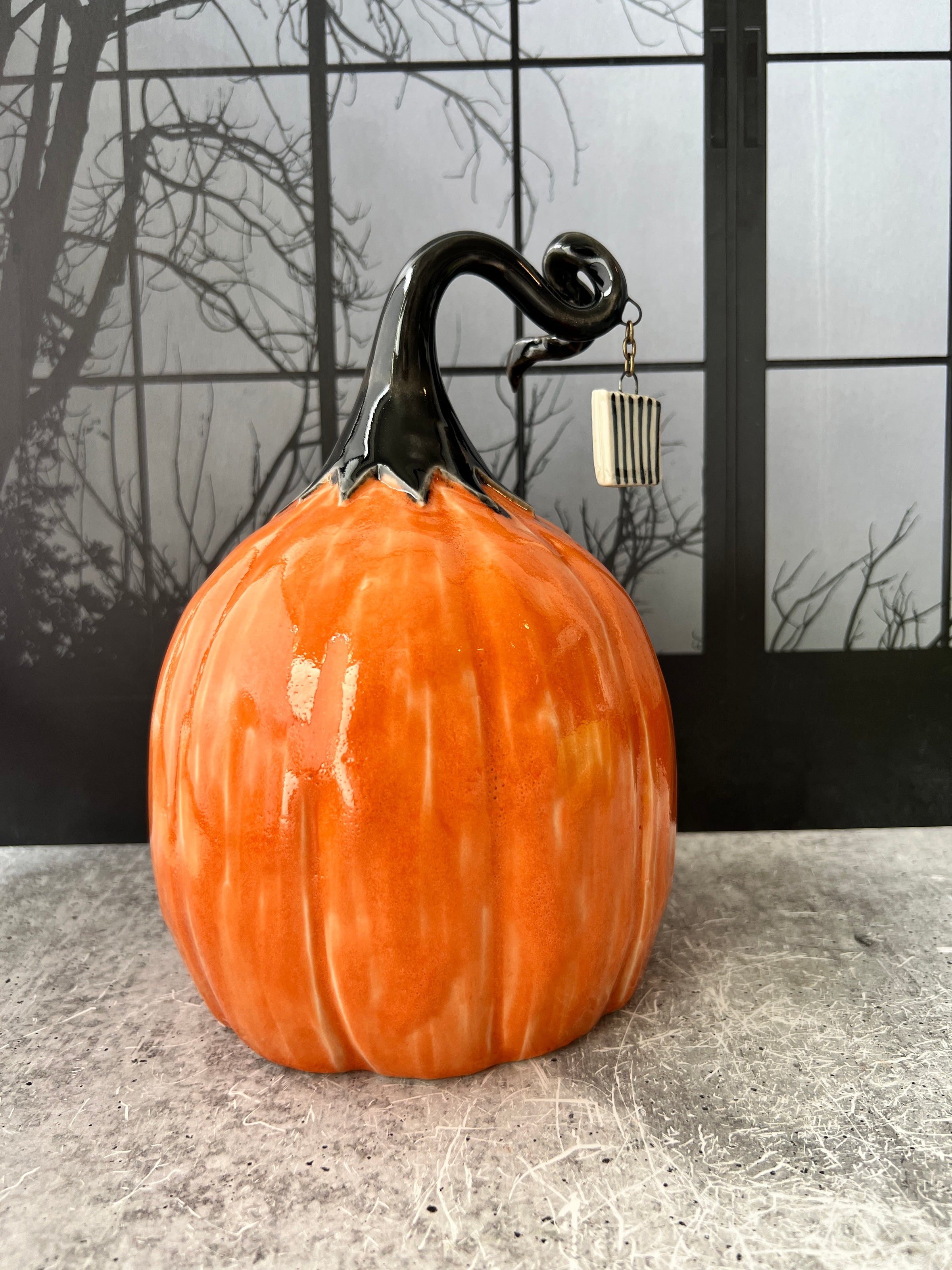 DO NOT use with an open flame/put a candle with open flame inside!!! Only use artificial lights such as LED lights. You can clean your jack o'lantern with soap and water like you would take care of any piece of kitchenware/pottery or dust it with a clean cloth.