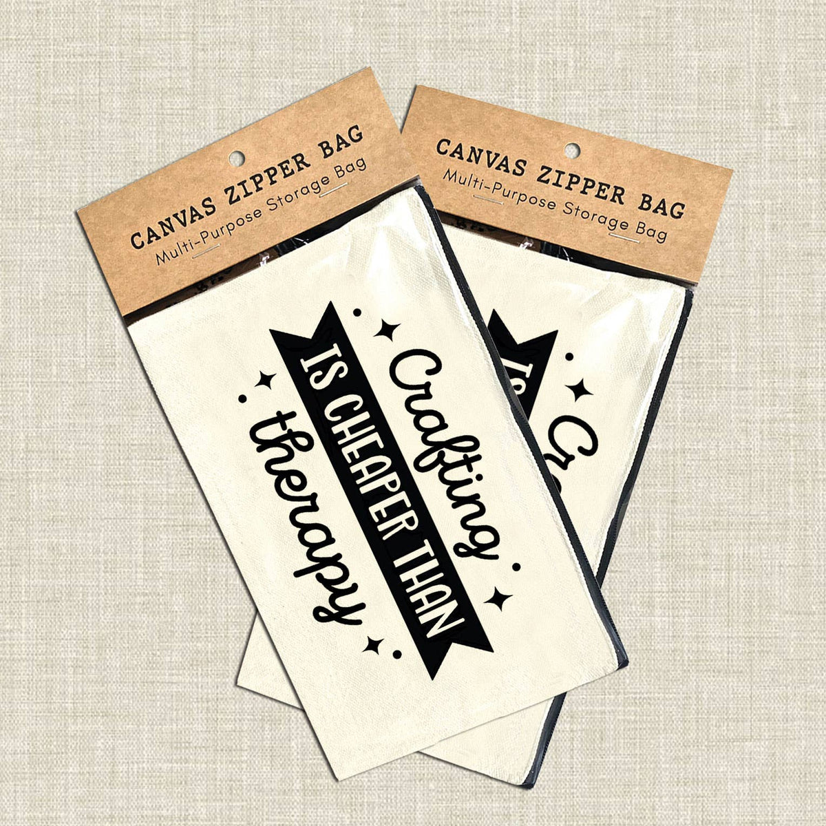 Each canvas zipper bag is individually packaged with or without a header card. Bags are unlined. Fabric is light beige canvas. Zipper is black. These canvas multi-purpose zipper bags measure approximately 8" wide x 4-1/2" high and feature a cute saying or design on the front. They are perfect for pencils, beauty products, stickers, and more plus they make great impulse items for your shop. Keywords: mom life, mom, mother, family, children, kids, impulse, grandma, grandmother, nana, love, wholesale bag, sewing gifts, craft gifts, sewing quotes, quilting, quilters, quilting quotes, crafting, crafters