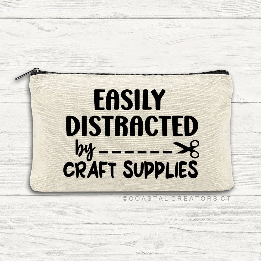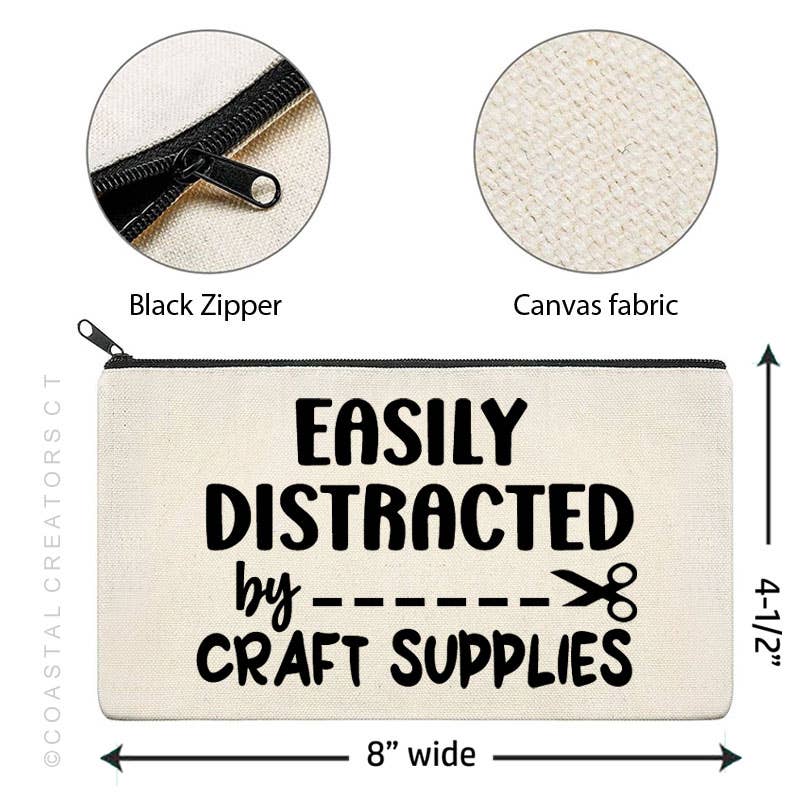 Easily Distracted by Craft Supplies Canvas Zipper Pouch