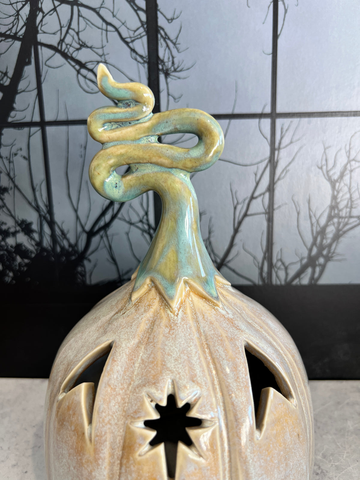 Each piece is made by me, Lindsay Keating in my studio in southeastern PA. I throw each piece on the pottery wheel, trim it, sculpt any additional elements such as a handle/make any alterations, carve and/or paint by hand, glaze and fire it twice.