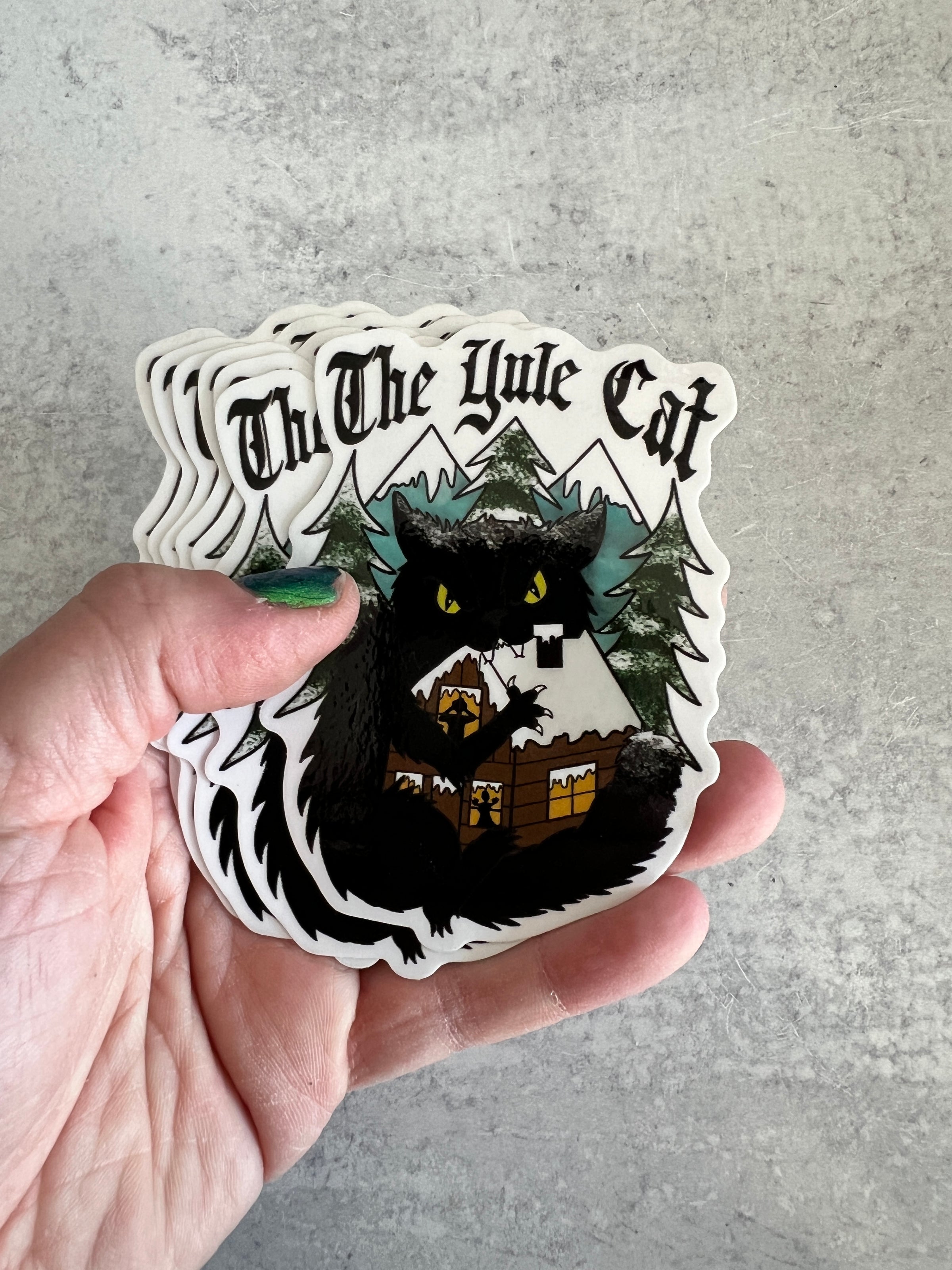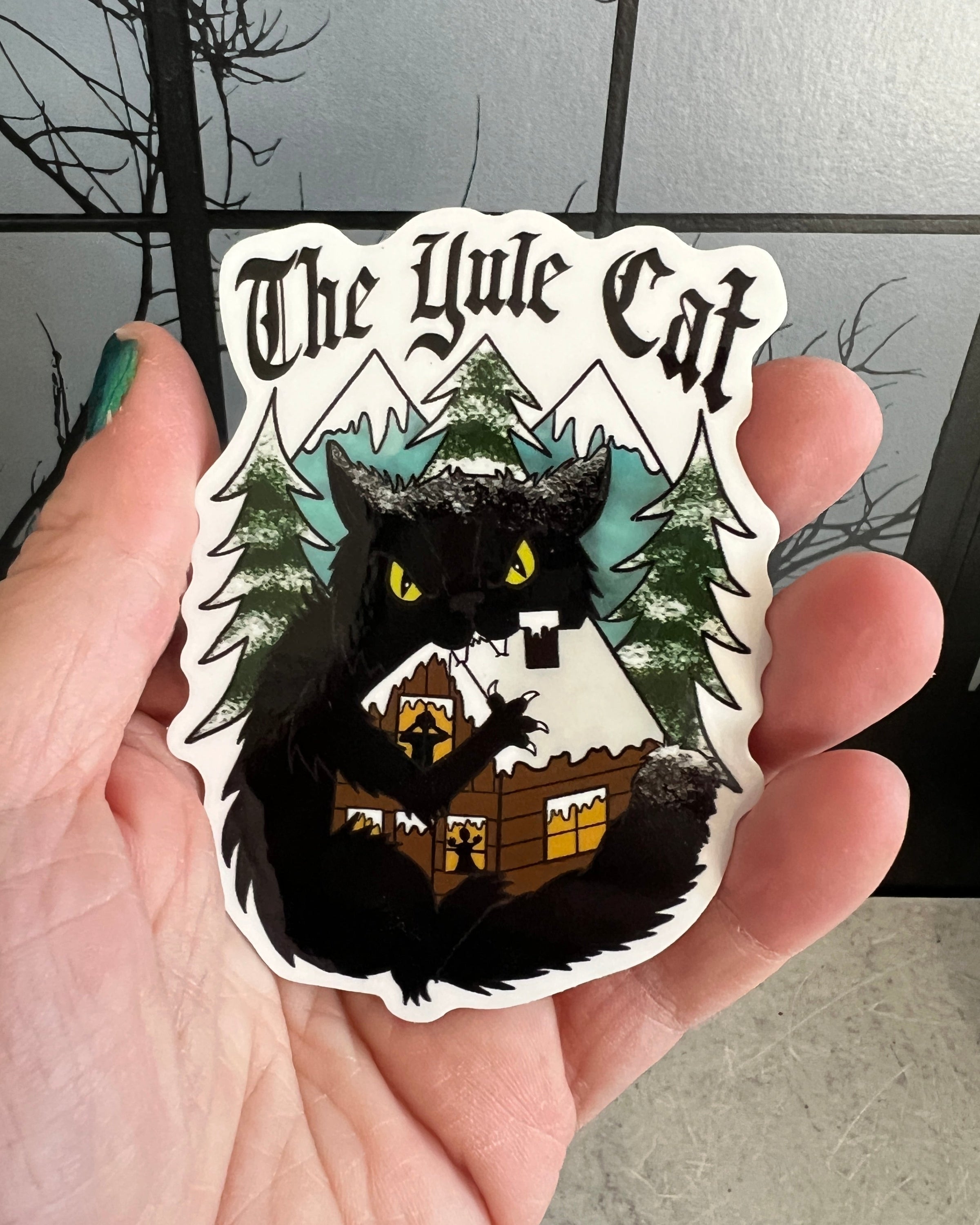3 inch die cut vinyl sticker of my Yule Cat illustration.